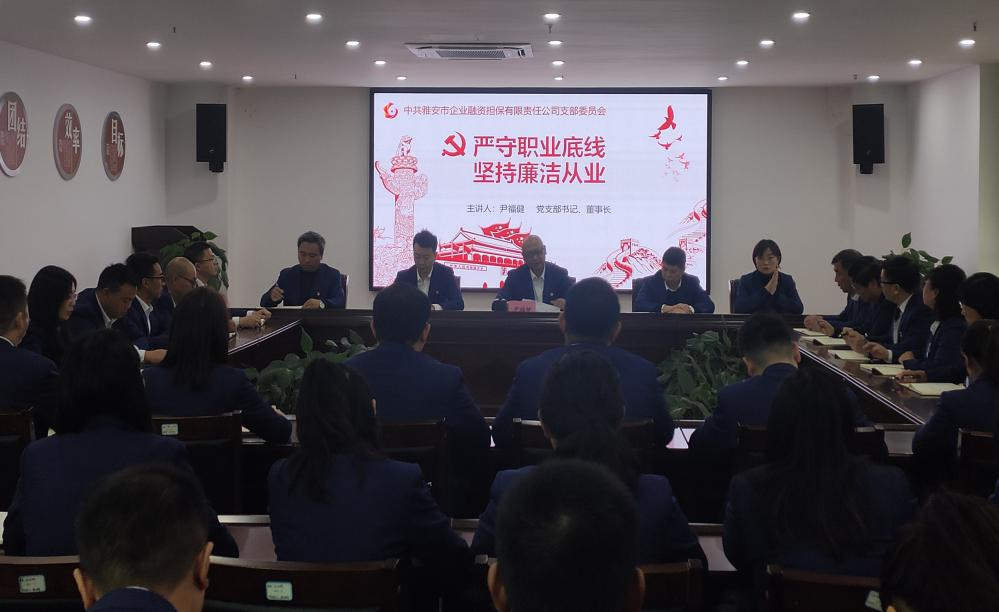 三是講黨課強(qiáng)黨性。市擔(dān)保公司黨支部書記、董事長尹福健以“嚴(yán)守職業(yè)底線,堅(jiān)持廉潔從業(yè)”為題,圍繞“認(rèn)識(shí)新形勢(shì)反腐敗斗爭(zhēng)的形勢(shì)、腐敗出現(xiàn)的原因和防范措施、學(xué)習(xí)廉潔法律法規(guī),防范廉潔風(fēng)險(xiǎn)、增強(qiáng)黨員領(lǐng)導(dǎo)干部拒腐防變的能力”四個(gè)方面,結(jié)合公司實(shí)際為黨員干部上了一堂生動(dòng)的廉政黨課,警示黨員干部要增強(qiáng)“四個(gè)意識(shí)”,堅(jiān)定“四個(gè)自信”,做到“兩個(gè)維護(hù)”,強(qiáng)化黨性修養(yǎng),自覺增強(qiáng)“免疫力”。
