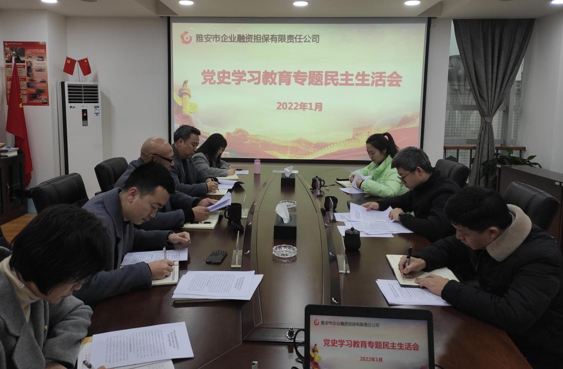 1月20日,市擔(dān)保公司黨支部召開黨史學(xué)習(xí)教育專題民主生活會,公司領(lǐng)導(dǎo)班子圍繞黨史學(xué)習(xí)教育專題民主生活會主題,結(jié)合工作實(shí)際,嚴(yán)肅認(rèn)真開展批評與自我批評。市財(cái)政局黨組成員、副局長康藜到會指導(dǎo),公司黨支部書記、董事長尹福健主持會議并代表領(lǐng)導(dǎo)班子作表態(tài)發(fā)言。